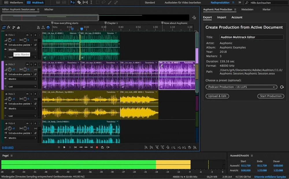 Adobe Audition — это профессиональный редактор звука, который используется в индустрии кино, телевидения и музыкальной продукции. Он сочетает в себе мощные инструменты для обработки аудиосигналов и удобный интерфейс, позволяющий быстро выполнять сложные задачи.